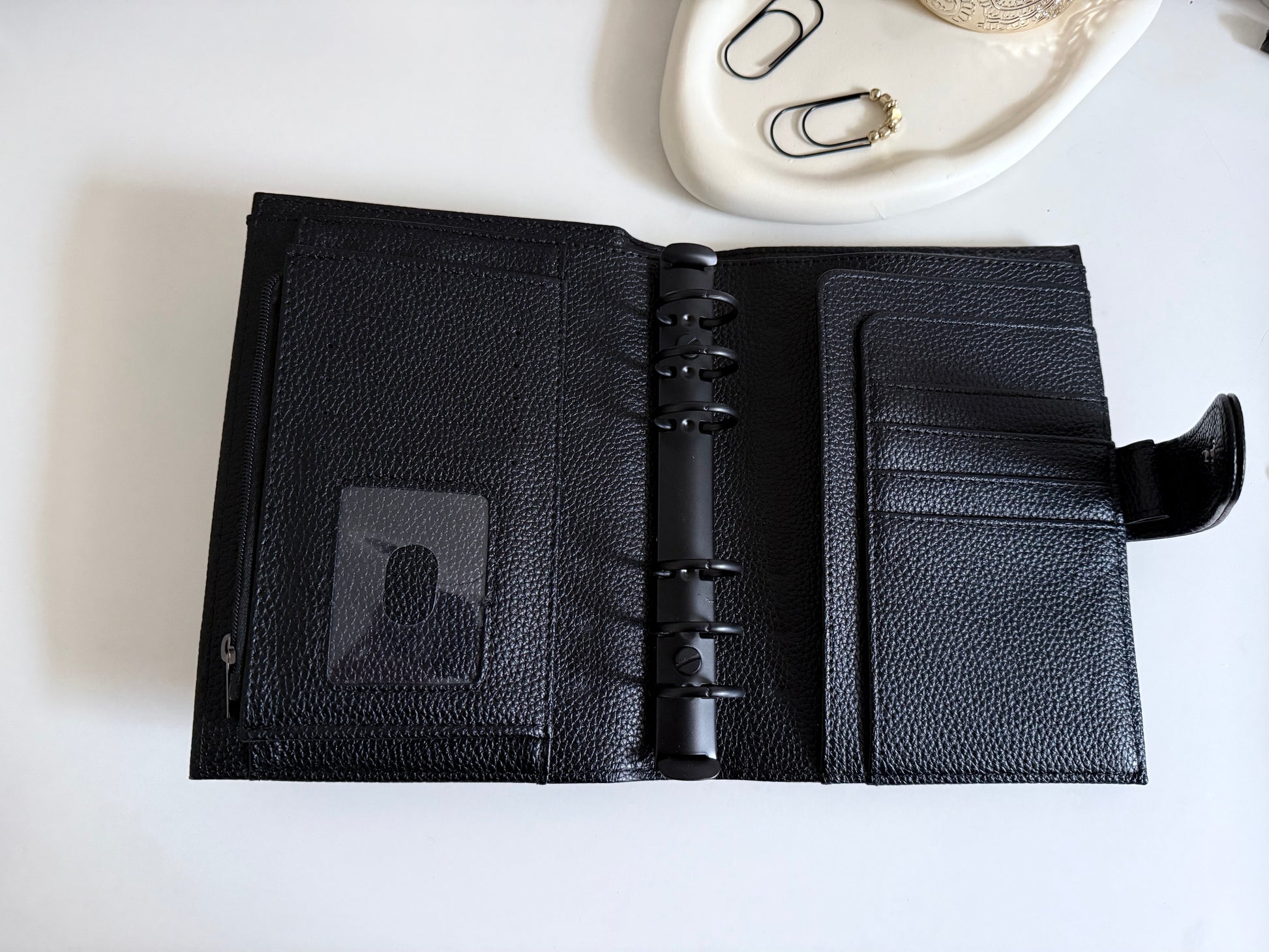 Design: Goldene oder schwarze 6-Ring-Mechanik für sicheres und einfaches Einheften